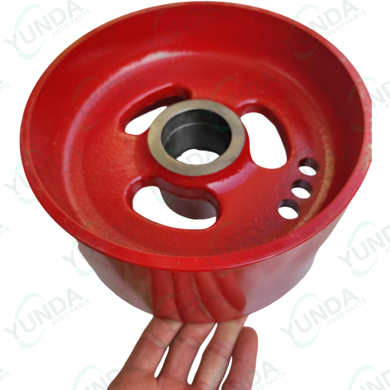 • Material: Cast iron hub, typically with a steel or engineered plastic rim, containing an internal bearing.